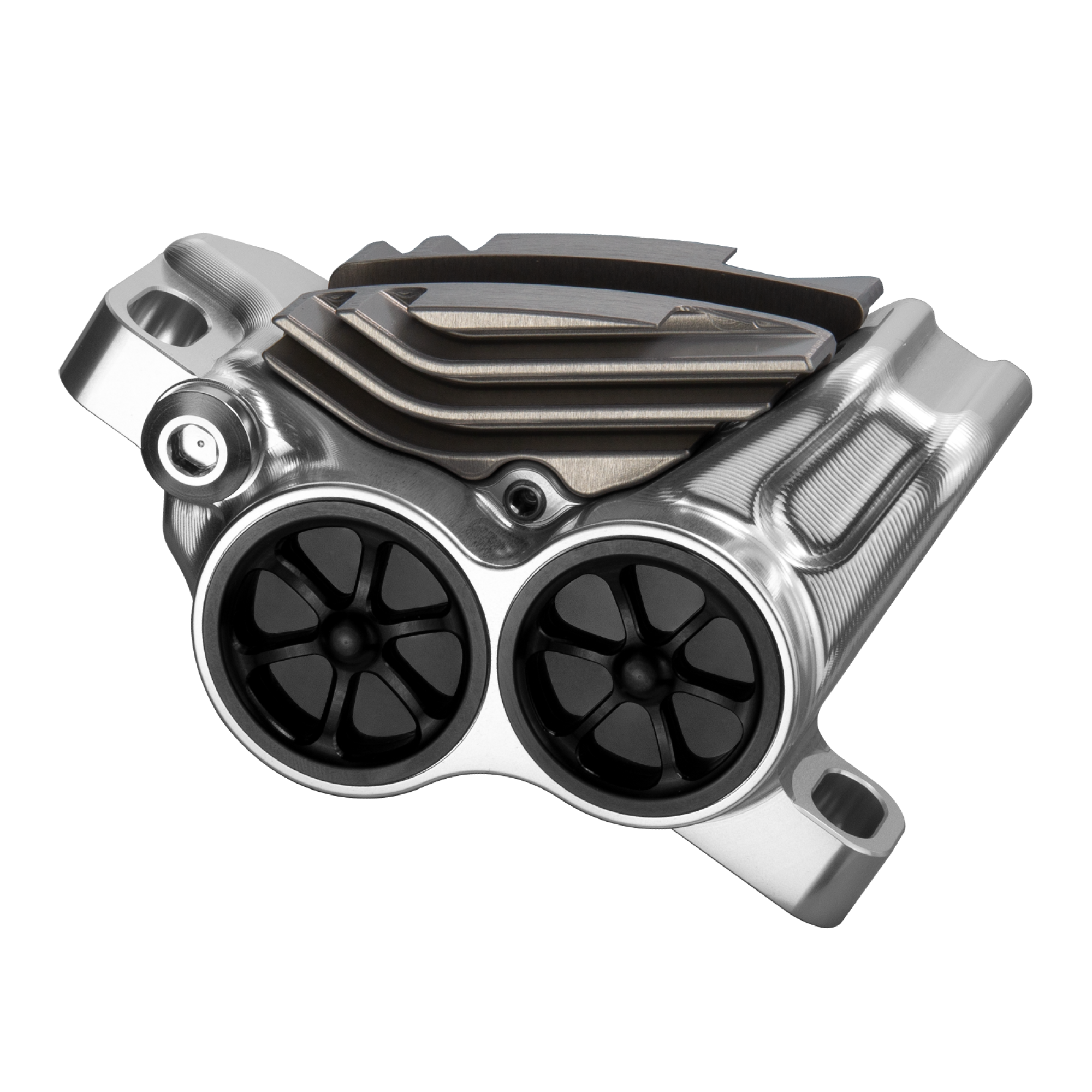 4-Piston System: Two 18mm + two 20mm pistons with insulation layers preserve power when the trail gets steep.