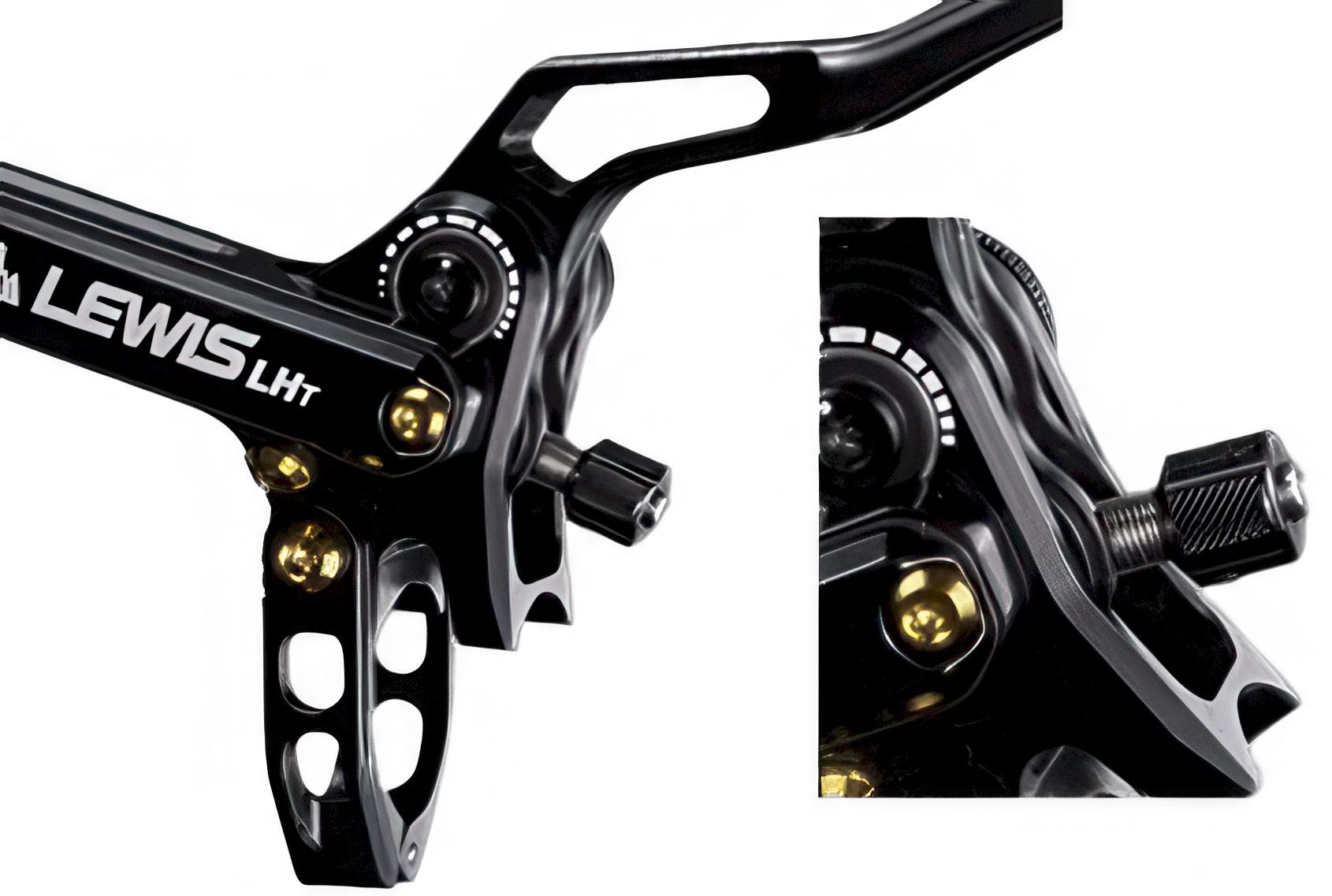The Lewis LHT brake caliper features a robust CNC-machined 7075 T6 aluminum construction, offering superior rigidity and lightweight performance. Titanium pistons enhance both durability and keep weight down. The combination of these advanced materials optimizes durability while maintaining low weight.